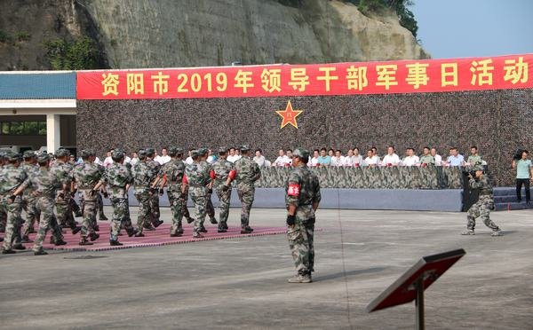 2019年8月1日,资阳市2019年“八•一”军事日活动在四川省救援队仓库举行,市民兵应急营全体官兵全程参加。资阳市主要领导干部参加了活动。