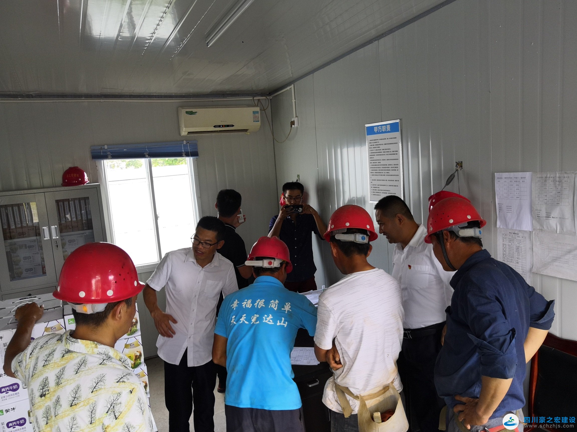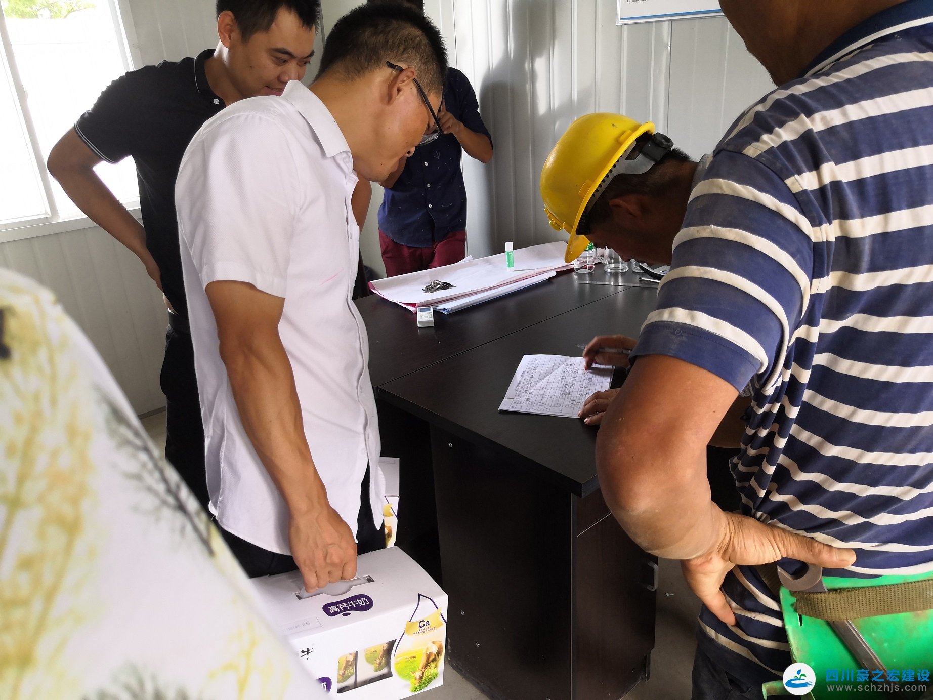 8月中旬,四川豪之宏建设工程有限公司在建项目施工现场仍有序地进行作业。公司负责人带领参建单位人员来到隆昌羽玺厂房二期项目工地,为高温期间仍奋战在一线的工人送上饮料、西瓜、解暑药品等物品,并叮嘱施工单位合理安排高温天气下工人的施工计划,妥善安排好工人的生活饮食,并加强高温期间的安全生产检查力度,确保工人安全的工作环境。