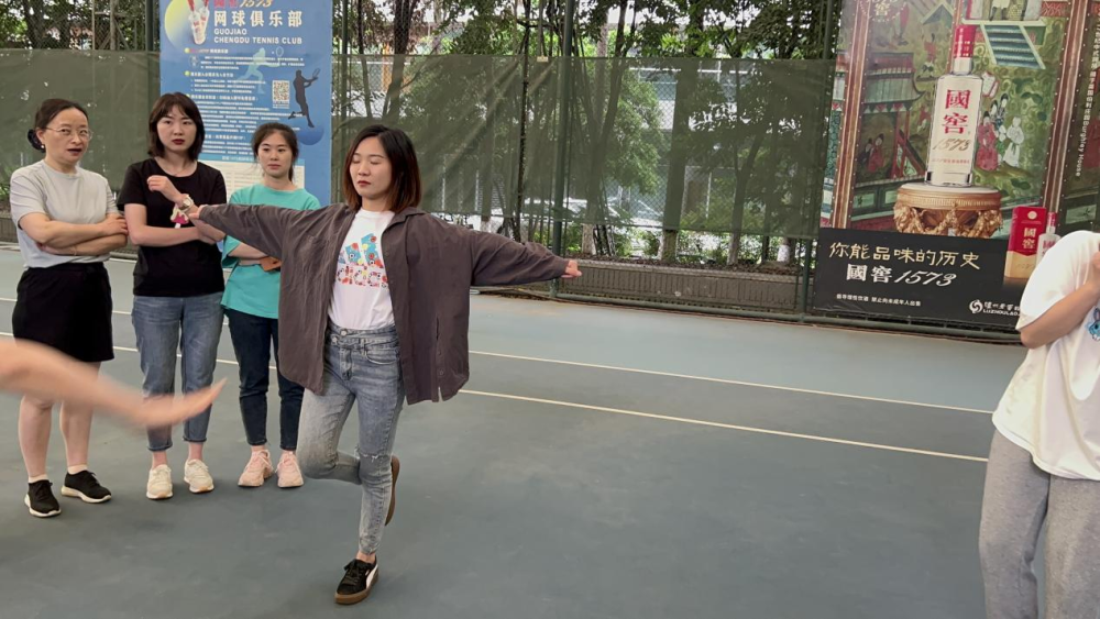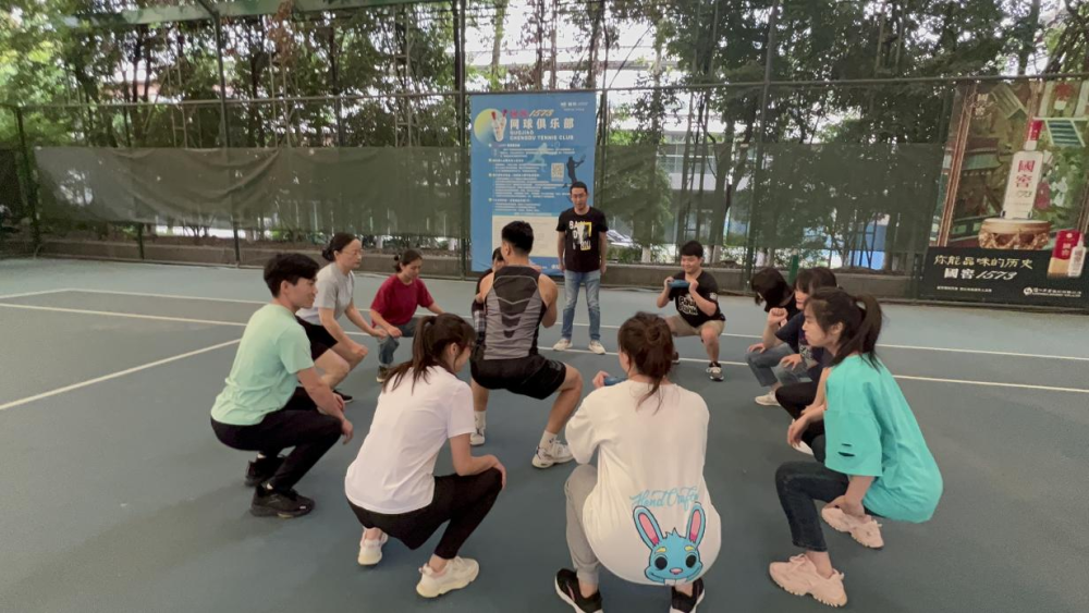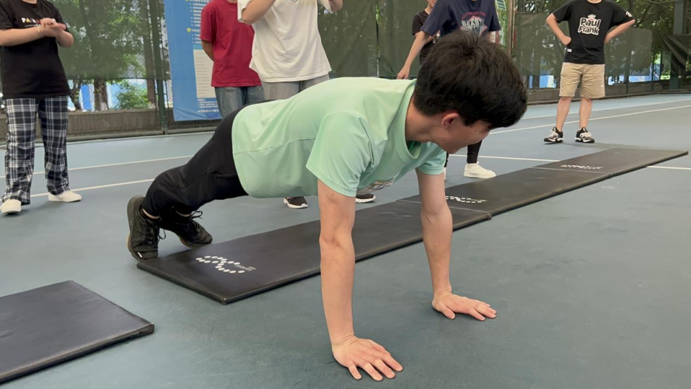 专业教练先带着畊宏男孩女孩们浅浅热个身,高抬腿、开合跳、本草纲目······一套组合拳下来,有的人开始进入状态,蓄势待发,有的人已开始气喘吁吁。