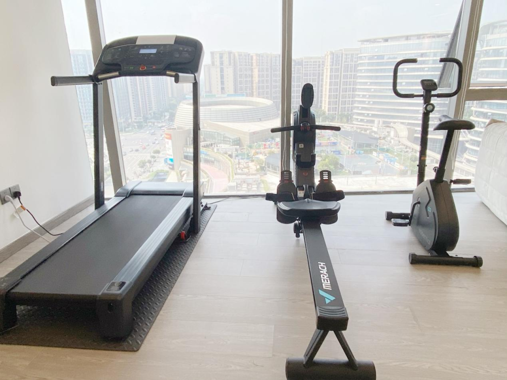 而公司的休闲区,随后也为大家安排上了跑步机、划船机、单车等健身器材,供大家工作之余积极锻炼······