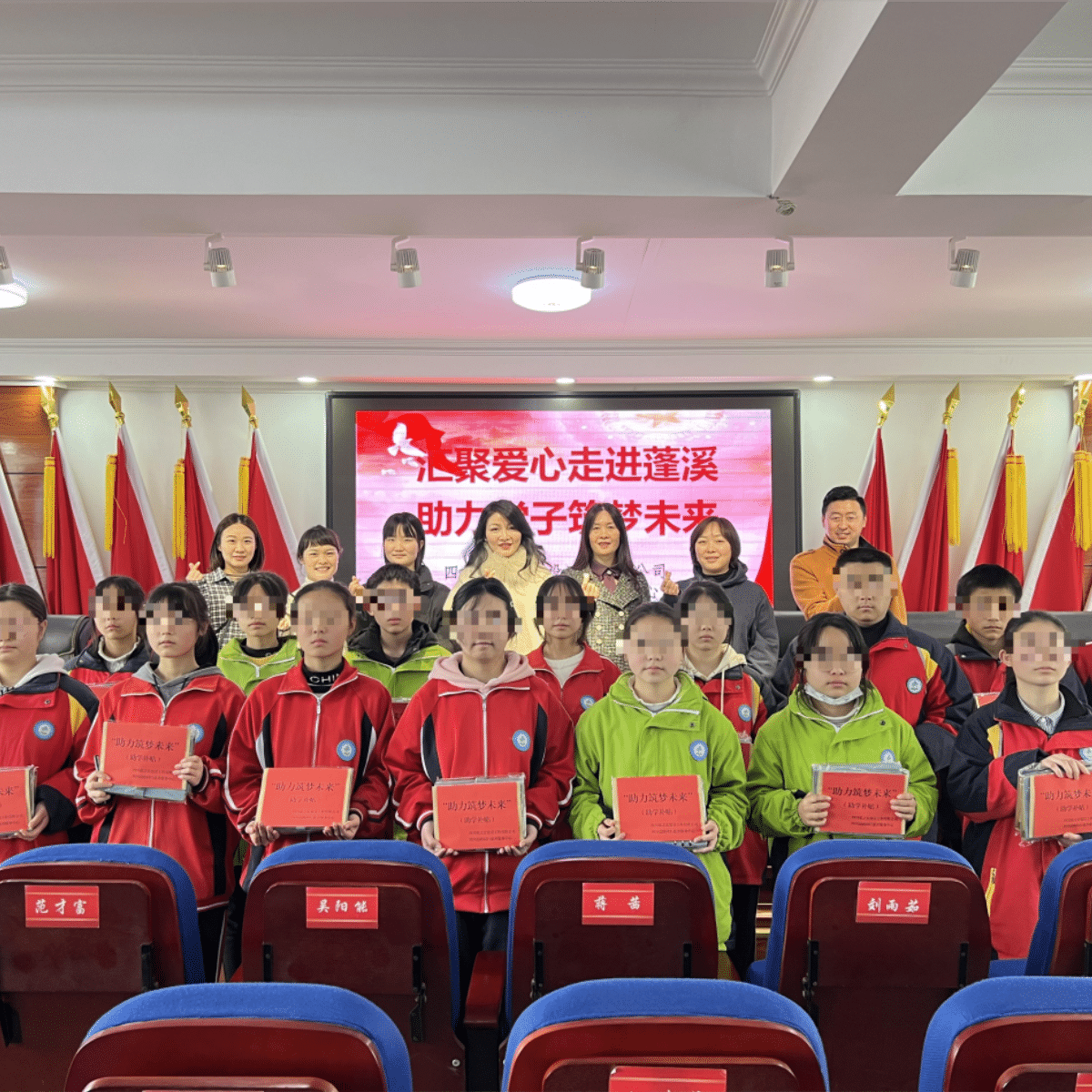 2023年3月2日,按照“成长益+1”助学活动计划,四川豪之宏建设工程有限公司、四川益路同行慈善服务中心组织志愿者14名,从成都驱车经资阳乐至,前往遂宁蓬溪县蓬南镇初级中学,对前期经过实地走访了解,确定帮扶的15位学生开展了助学活动。